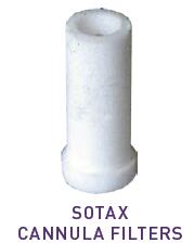 Sotax baths normally use 1/8"(3.2mm) cannula style filter with a large range of porodities.